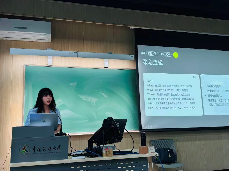Le 7 juillet, lors de la première séance, Teng Ruibei, ancienne étudiante en français (promotion 2019) et aujourd’hui en master de journalisme international, a présenté les étapes clés de la production journalistique en s'appuyant sur son expérience de terrain. A travers l'exemple de deux de ses vidéos primées, elle a expliqué comment choisir des sujets alliant valeur sociale et potentiel médiatique. Elle a également partagé des techniques d'interview et de montage, soulignant l'importance des sauvegardessystématiqueset du travail en équipe, et insistant sur la nécessité d’adopter une perspective interculturelle. Le professeur Zhang Ge a ensuite fait la synthèse et enrichi les méthodes et normes de production, tout en précisant les objectifs et les missions du stage à partir des travaux d'anciens étudiants.