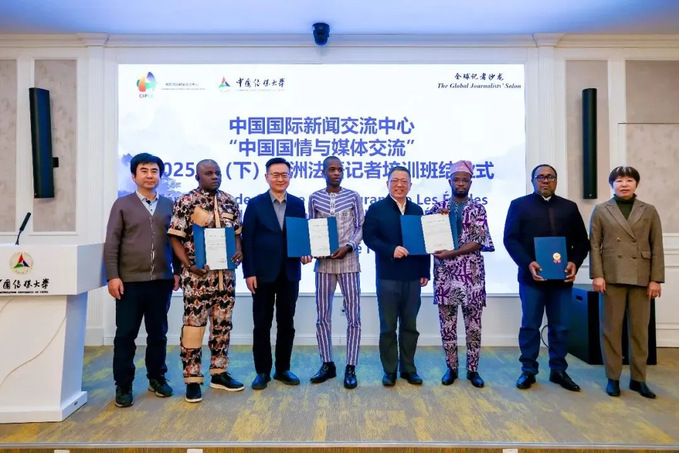 Le 5 décembre, la cérémonie de clôture de la session 2025 (second semestre) de formation des journalistes francophones africains sur « la réalité nationale chinoise et les échanges médiatiques », organisée par le Centre de la Presse Internationale de Chine, ainsi qu’un séminaire sur « le Sud mondial et la diffusion internationale de la modernisation à la chinoise » se sont tenus à l’Université de communication de Chine (CUC). Cet événement visait à approfondir les échanges médiatiques sino-africains et à promouvoir le dialogue interculturel et la coopération entre les deux parties.