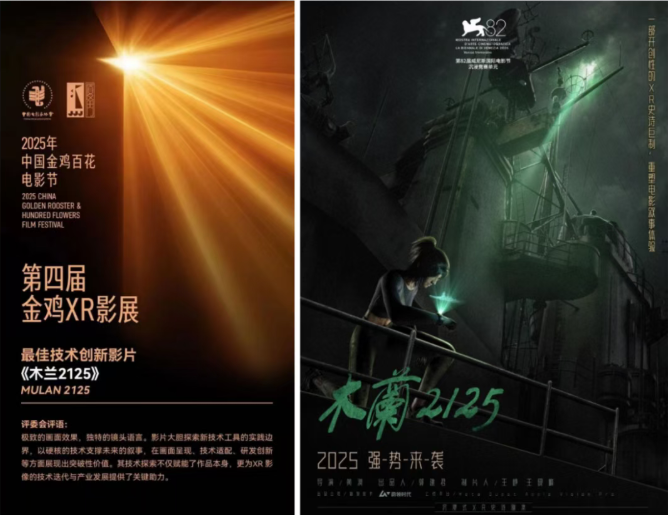 Ces derniers jours, le Festival du cinéma du Coq d’Or et des Cent Fleurs de Chine 2025 (2025 China Golden Rooster and Hundred Flowers Film Festival) s’est achevé. Le film XR immersif AAA « MULAN 2125 » a été sélectionné pour la projection de la sélection finale de la 4e édition du Festival XR du Coq d’Or, où il a remporté le prix du meilleur film d’innovation technologique.