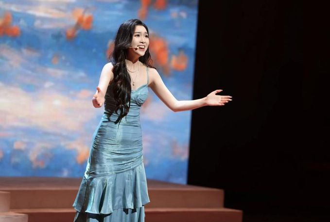 Lors de la section dédiée aux représentations, Liu Yanyan, étudiante de licence (promotion 2021) du programme de comédie musicale, et Jiang Yiwen, étudiante de master (promotion 2025), ont interprété respectivement des extraits de la comédie musicale chinoise originale Fei Tian1 et des passages classiques de La Vraie et la Fausse Princesse, démontrant leur solide compétence artistique.