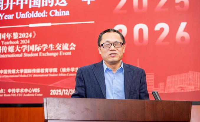 Le 30 décembre 2025, dans l'après-midi, l'événement d'échange pour les étudiants internationaux de l'Université de Communication de Chine, intitulé « Ouvrir cette année de la Chine » – « Annuaire de la Chine 2024 », organisé par l'École internationale d'Éducation aux Médias (Centre des affaires étudiantes étrangères), s'est tenu avec succès au Centre académique de CUC. Shen Jian, membre du Comité du Parti et vice-président de la Maison d'édition Xinhua, et directeur du département éditorial de l'« Annuaire de la Chine », ainsi que Chu Yangbo, rédacteur du département éditorial ont participé à l’événement. Étaient également présents Long Jun, secrétaire du Comité du Parti de l'École internationale d'Éducation aux Médias, Jin Xuetao, doyen de l'École internationale d'Éducation aux Médias, et d'autres représentants du corps enseignant de l'école, ainsi qu’une vingtaine de participants issus des programmes d’aide à la formation diplômante et à l’attribution de diplômes à l’étranger de l’université.