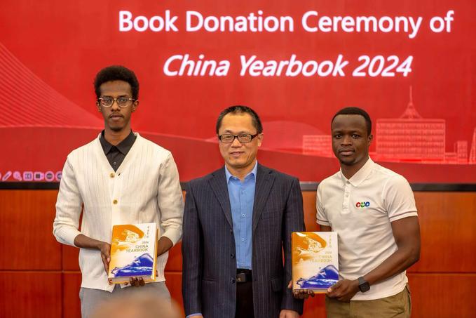 Shen Jian, au nom des Presses Xinhua, a offert l'édition anglaise de l'« Annuaire de la Chine 2024 » aux représentants des étudiants internationaux participant à l'événement. Ce cadeau substantiel permettra aux étudiants internationaux de surmonter les différences culturelles et les barrières de l'information, d'acquérir une compréhension approfondie du processus de développement de la Chine, de son paysage social et de son héritage culturel, et ainsi de former une perception plus précise et plus profonde de la Chine.