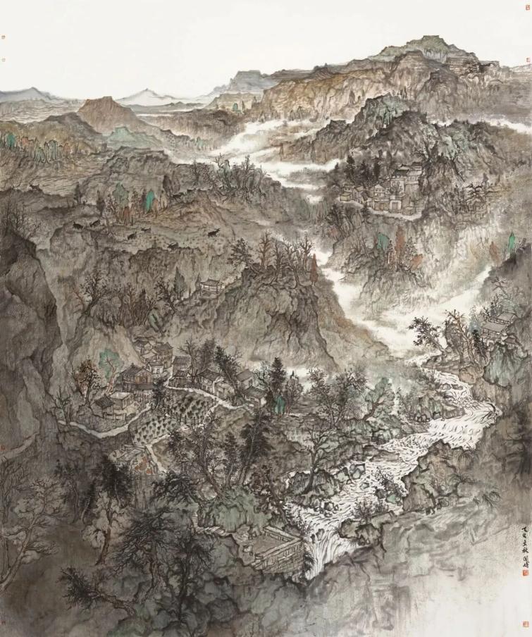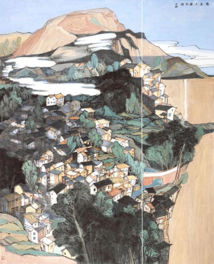 ▲Feng Zishan, Voyage aux tours de terre de Yangchan , 180 x 145 cm, 2025