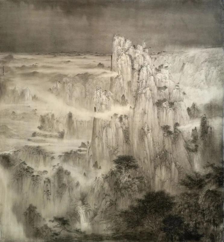 ▲Cheng Mengmeng, L’âme de la montagne forgée par le Dao , 220 x 150 cm, 2025