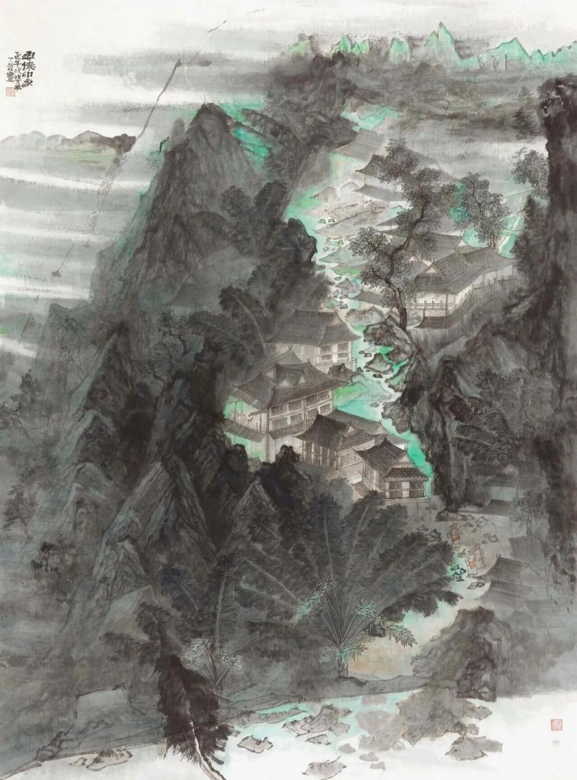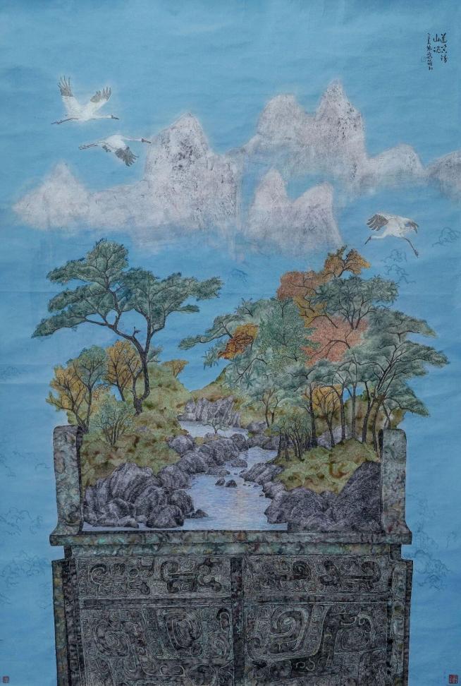 ▲Chen Zijuan, Couleurs d’automne flottant avec la fumée , 218 x 154,5 cm, 2023