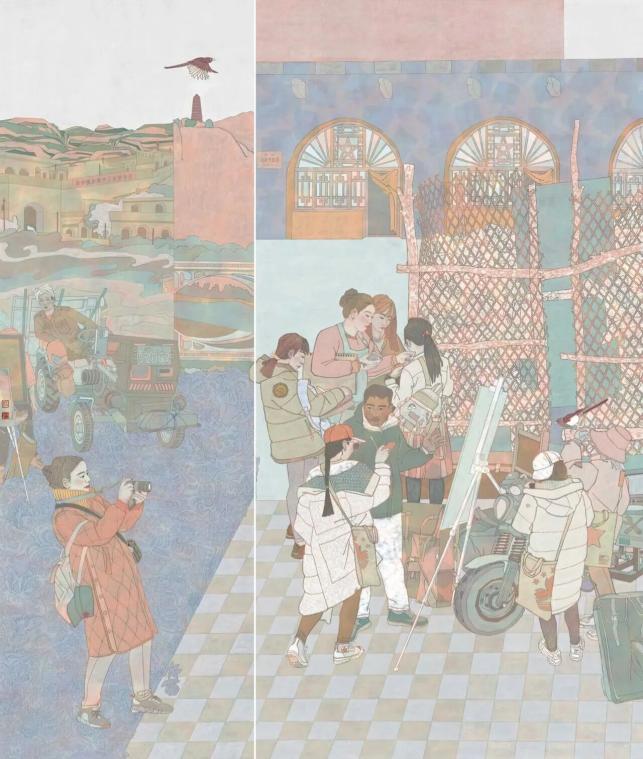 ▲Fan Pengjie, Le printemps revient à Subohan , 200 x 240 cm, 2024