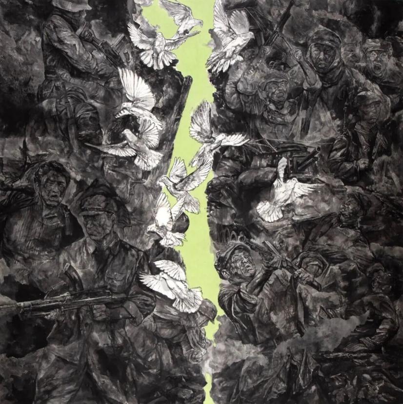 ▲Ding Shengqian, Colombes de la paix , 200 x 200 cm, 2022